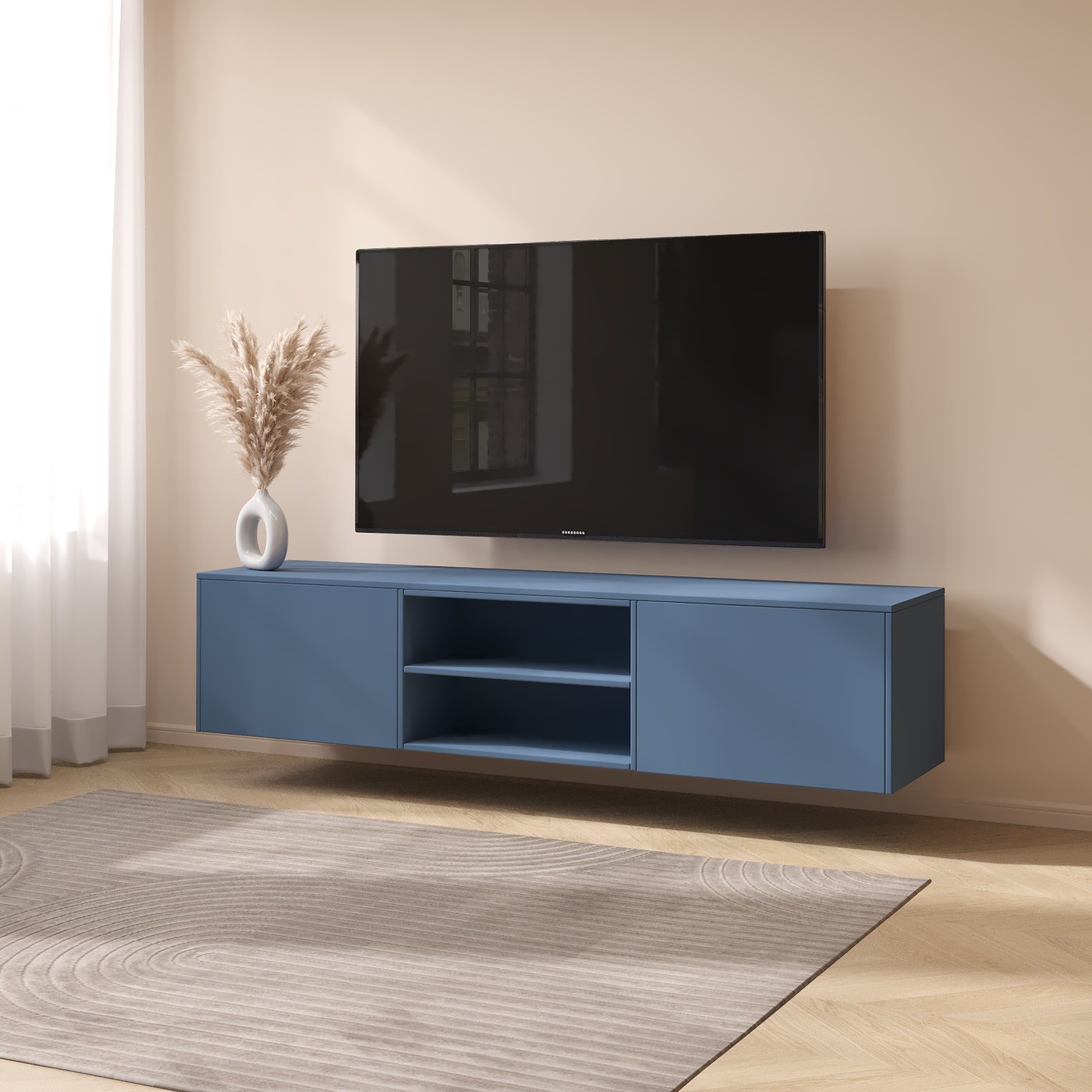 Artego Design Frame 183 cm TV Wandmeubel Turin Rookblauw