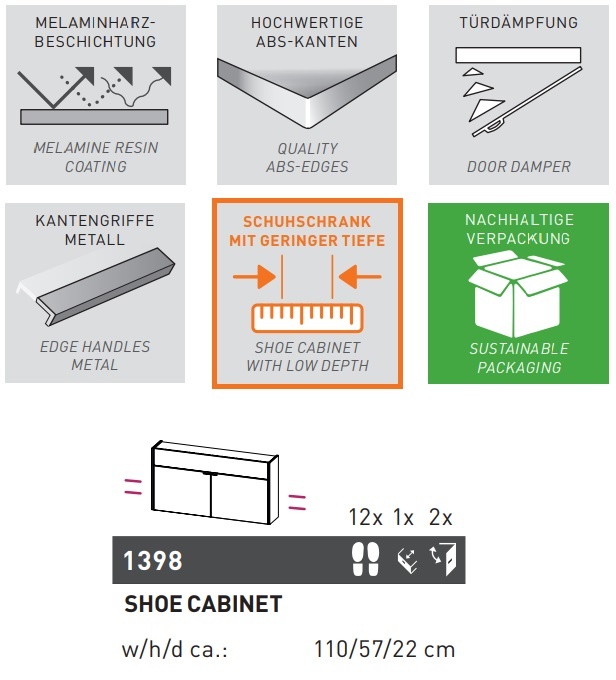 Germania Ameca Cashmere / Eiken Schoenenkast Laag