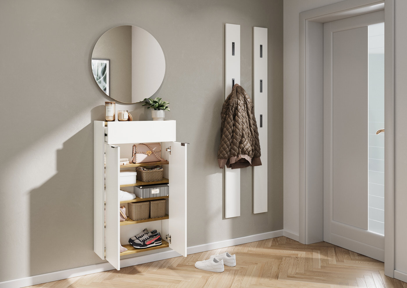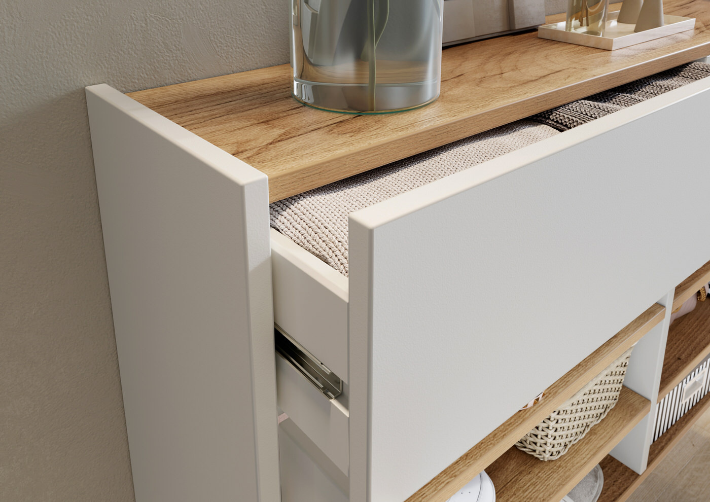 Ameca FSC Wit / Eiken Multifunctionele Wandkast Hoog