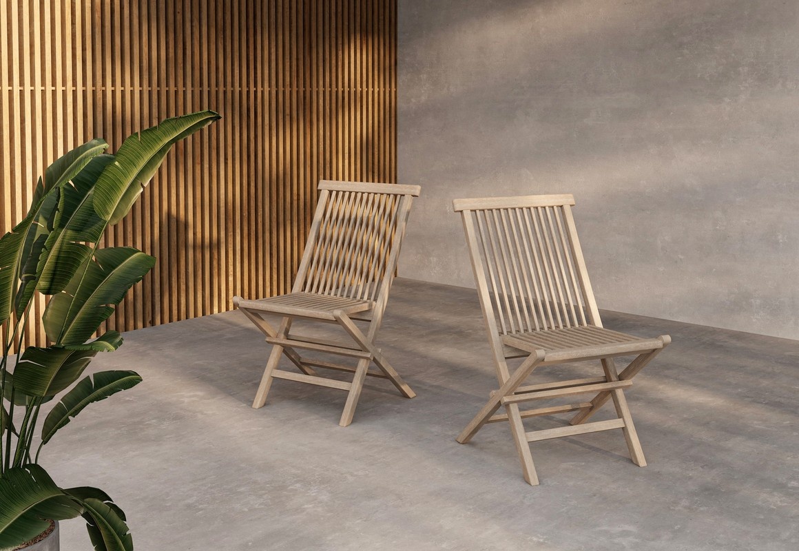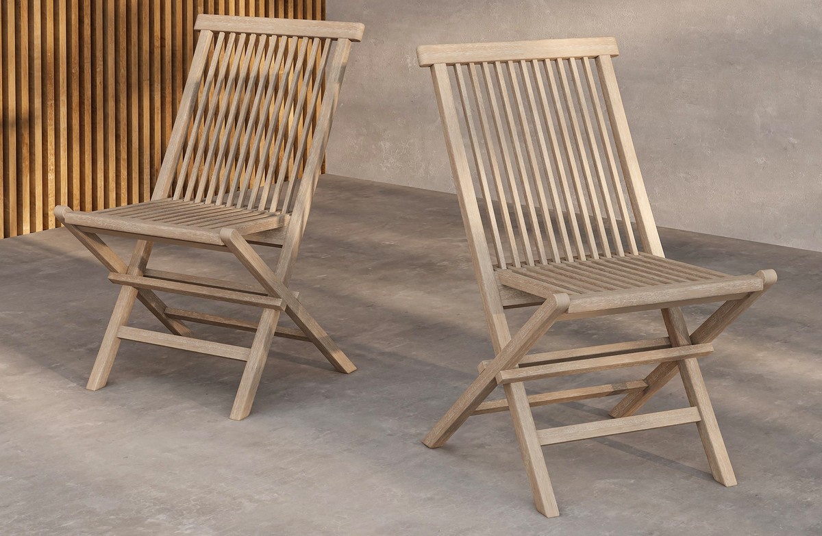 Hjem interiors Kenya Teak Tuinstoel White Wash Set van 2