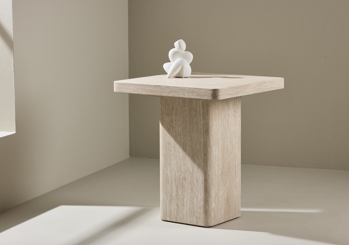 Hjem Interiors Qvart Travertijn Beige Bijzettafel Vierkant