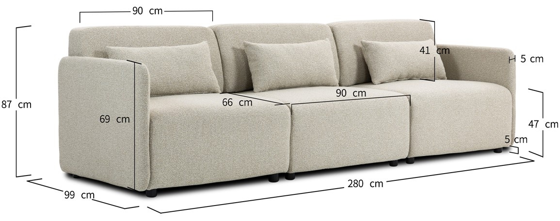 Mia Beige 3-Zits Bank