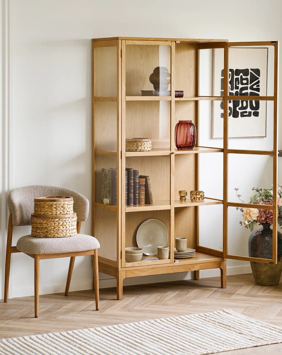 House Nordic Zamora Eiken / Glas Vitrinekast met 2-Deuen