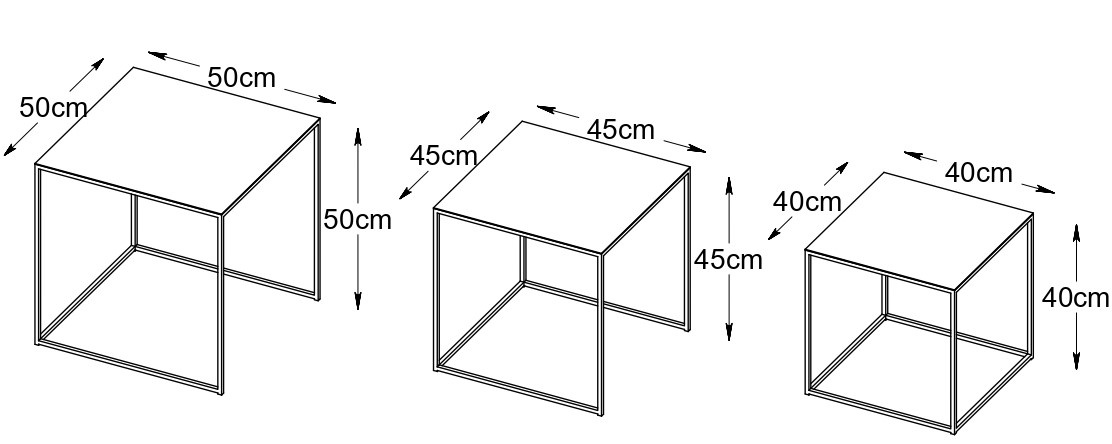 Pebble Zwarte Bijzettafel Set van 3 Vierkant