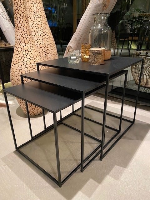 Hygge Interiors Pebble Zwarte Bijzettafel Set van 3 Vierkant
