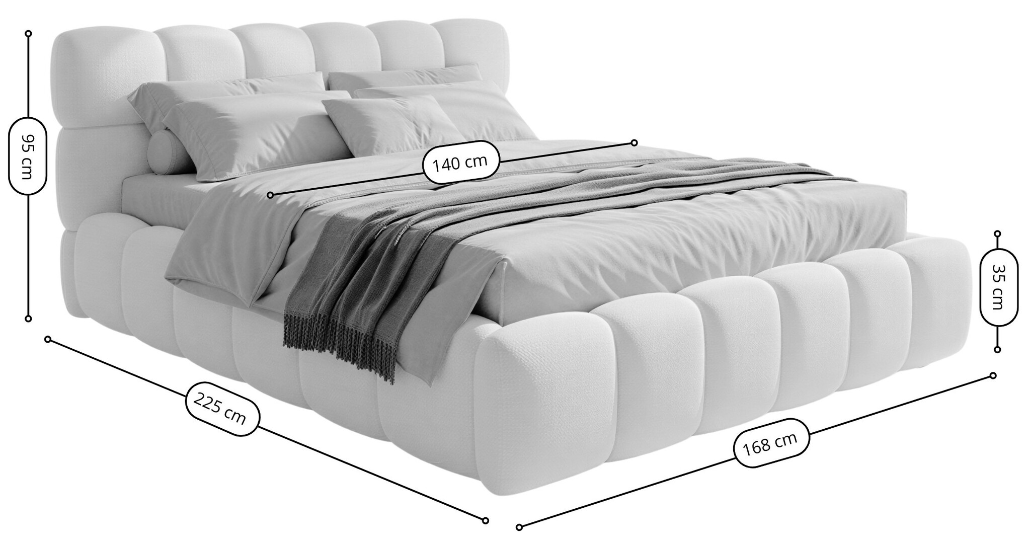 Boston Slim 140 x 200 cm Gestoffeerd Bed Naturel