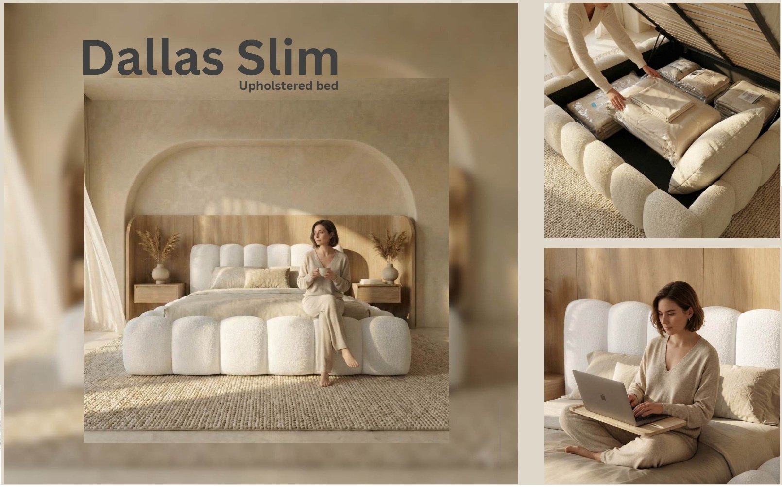 Trae Mobler Dallas Slim 180 x 200 cm Gestoffeerd Bed Velvet Bruin